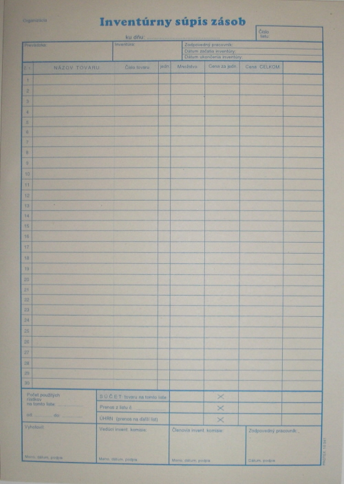10341 INVENTÚRNY SÚPIS ZÁSOB A4 BLOK 50 list.