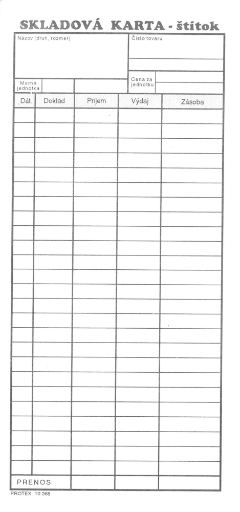 Tlačivo - Skladová karta 10365 - štítok 10 x 21 cm