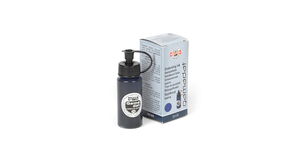 Farba pre samonamáčacie, ručné a mechanické pečiatky z gumy, kovu alebo tvrdenej fólie. Plastová flaštička 20 g.