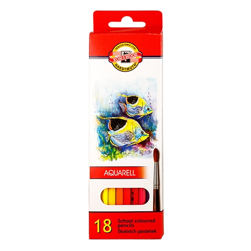 Školské drevené 18-farebné kvalitné akvarelové farbičky Aquarell v papierovej krabičke. Pomocou štetca a vody je možné premeniť kresbu na akvarelovú maľbu, kde nemusí byť ani stopa po ceruzke, ale iba veľmi jemne lavírovaná maľba. Dĺžka 175 mm, hrúbk
