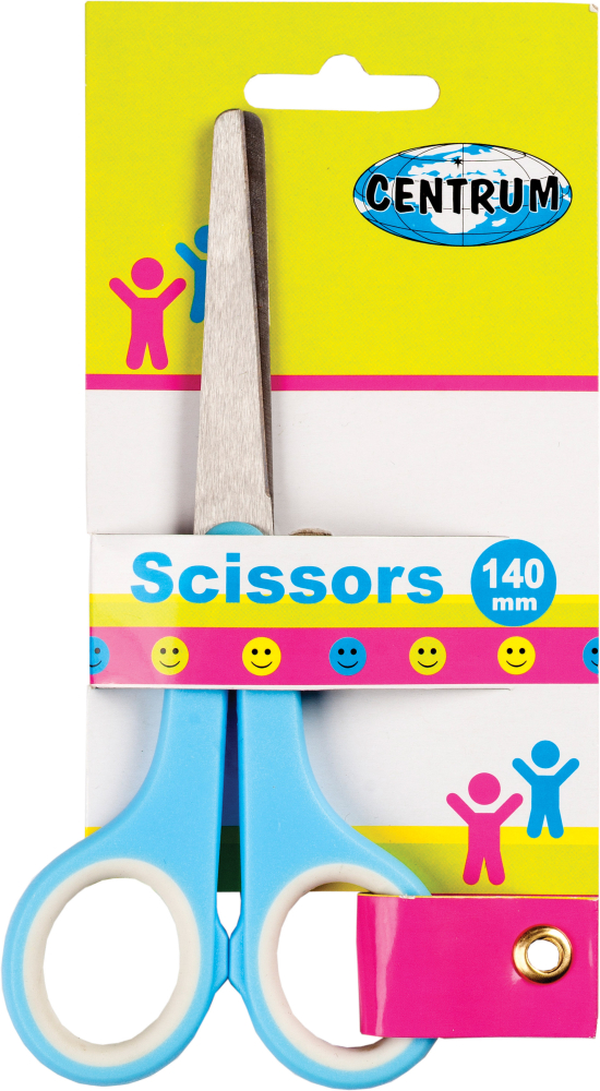 Školské nožníce v rôznych farebných variantach. 14cm. Balené v blistri.