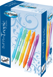 Guľôčkové pero s vymeniteľnou tuhou 0,5mm, ergonomicky tvarovaná pogumovaná úchopová časť. Mix farieb, priehľadné plastové telo, plastový klip.