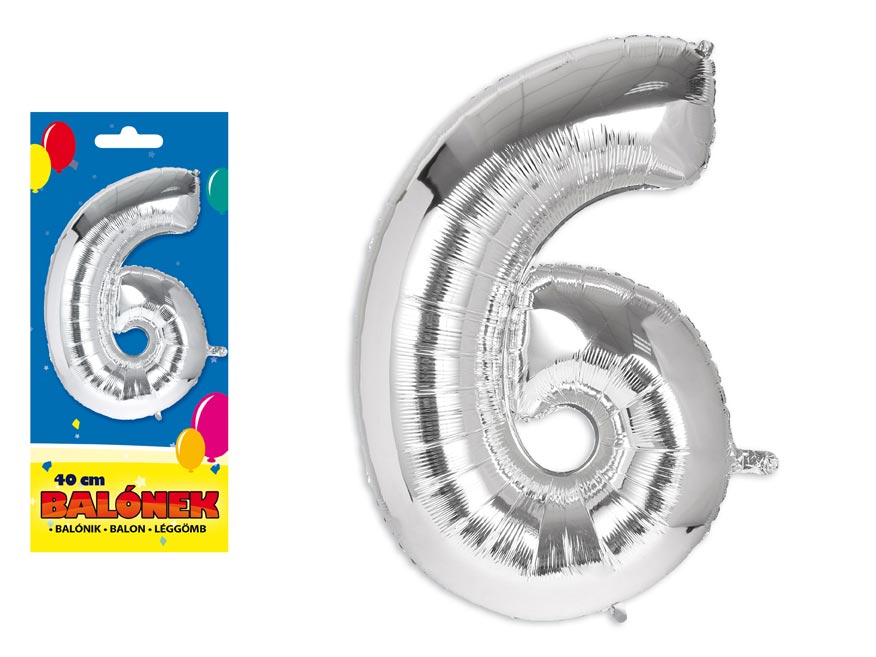 Nafukovací fóliový balónik v tvare čísla 6. Balónik je vyrobený zo striebornej fólie. Na hornom okraji balónu sú očká na priviazanie. Balóniky sú vhodné na narodeninové oslavy, firemné párty a iné spoločenské udalosti.Výška balónu: 40 cmUvedená