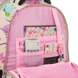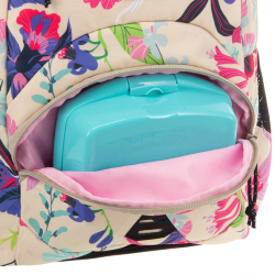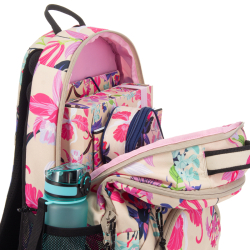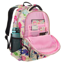 Jasne transparentné, praktické na usporiadanie, ktorých súčasťou sú 2 bočné sieťované vrecká na fľašu s vodou a malé školské potreby, 1 veľká priehradka s polstrovaným držiakom na notebook.