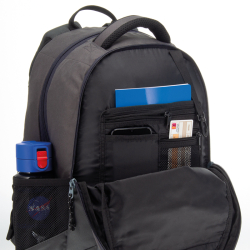 Jasne transparentné, praktické na usporiadanie, ktorých súčasťou sú 2 bočné sieťované vrecká na fľašu s vodou a malé školské potreby, 1 veľká priehradka s polstrovaným držiakom na notebook.