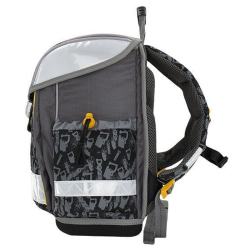 Školská aktovka pre prvý stupeň ZŠ, najmä pre 1.-3. triedu. Jednokomorová školská aktovka s vnútornou separačnou kapsou. 2 postranné kapsy na zips vhodné na fľašu. Pevné polstrovaný chrbát, nastaviteľný hrudný pás, nastaviteľné ramenné popruhy, mäkko polstrované. Predná priestorná zipsová kapsa na desaťový box a pod. krytá lemom proti prieniku vody. Vnútorná separačná kapsa na suchý zips na peračník alebo zošity A5. Reflexné prvky z každej strany batohu. Plastom spevnené držadlo. Pevné dno s plastovými nožičkami - stabilný. Materiál: 100% polyester - vonkajšie látka aj podšívka. Rozmery: 36 x 32 x 19 cm. Hmotnosť: 1,0 kg. Nosnosť: 7 kg. Objem: 17 l