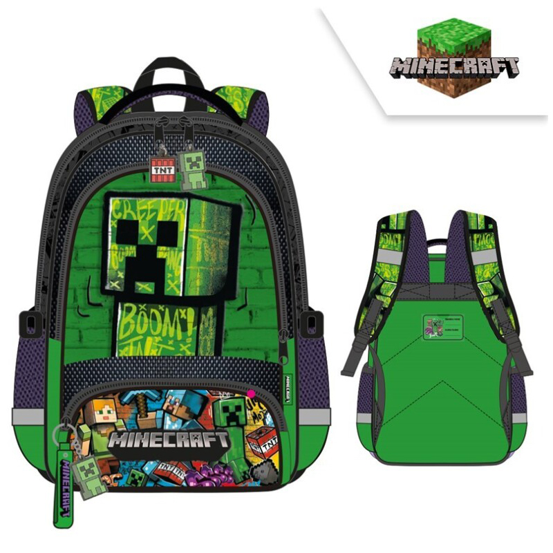 Batoh je inšpirovaný pixelovaným svetom Minecraftu. Je mäkký na dotyk a má lesklú povrchovú úpravu. Usporiadajte si výbavu ako profesionál: 1 veľký hlavný priestor na knihy alebo notebook, 2 ďalšie vrecká na cennosti, 2 bočné vrecká ideálne na vodu. Zipsy so silikónovými úchytkami s postavičkami z Minecraftu, popruhy s reflexnými prúžkami pre bezpečnosť po zotmení. Rozmery: 45x33,5 cm.