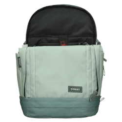 Batoh na notebook je vyrobená z odolnej tkaniny s vysokou hustotou. Vertikálne predné vrecko pre pohodlné uloženiea organizáciu. Stredné vrecko s veľkou kapacitou. Hlavná priehradka s polstrovaným vreckom na notebooka funkčný organizér. Odolný popruh na batožinu na zadnej strane. Skryté vrecko na zips na zadnej strane pre bezpečné uloženie. USB nabíjací port na boku. Mäkké polstrované popruhy vyrobené z odolného materiálu pre ľahké prenášanie a používanie. Ramenný popruh má nastaviteľnú pracku. Hrubšia polstrovaná rukoväť na vrchu pre ľahké prenášanie. Vrecko na kartu na ramennom popruhu. Vrecko na dvoch stranách. Rozmer: 46 x 32 x 17 cm. Váha: 0,75 kg.