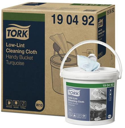 Tork Low-Lint čistiaca utierka je pevná a pružná. Utierky sa dodávajú v kotúči vo vedre, ktoré umožňuje vytvoriť vlastné vlhčené utierky s použitím chemikálií podľa potreby. Jednorazové dávkovanie a jednoducho uzatvárateľné veko zabraňujú vyschnutiu utierok.