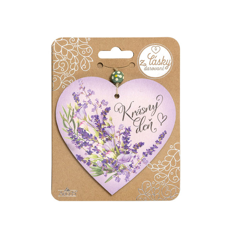 Krásny drevený darček pre tých, ktorých máte radi. Preglejkové drevené srdiečko s jednostranou potlačou zavesené na šnúrke s korálkom. Zavesené na kraftovej hlavičke, na ktorú z druhej strany môžete napísať svoje venovanie osobe, ktorej ho z lásky chcete venovať.