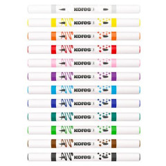 Dekoračný popisovač, sada, akrylový, 1-2 mm, obojstranný, KORES " K-Kreative", 12 rôznych