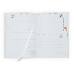 Formát: A5. Matná obálka s razbou roku. Tvrdá šitá väzba. Cena za 1 ks výrobku. Kvalitný diár s hodinovým delením (8:00 - 18:00) obsahuje slovenský, český, maďarský a nemecký preklad mesiacov a dní.