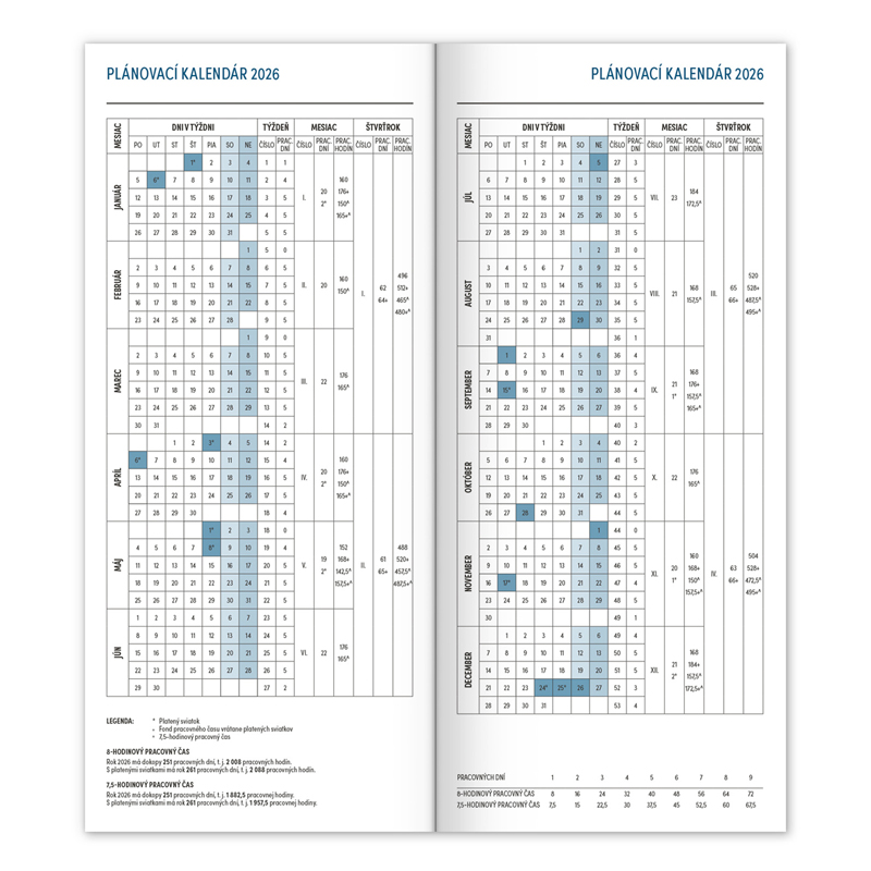 Praktický tenký diár s motívom fialových kvetov s mesačným rozložením sa vojde naozaj všade. Obsahuje slovenské kalendárium s menami, sviatkami a pamätnými dňami, pracovný kalendár, zoznam mien a prehľad na rok 2026 a 2027. Väzba šitá. Rozmery: 80x180mm. Počet strán 32.