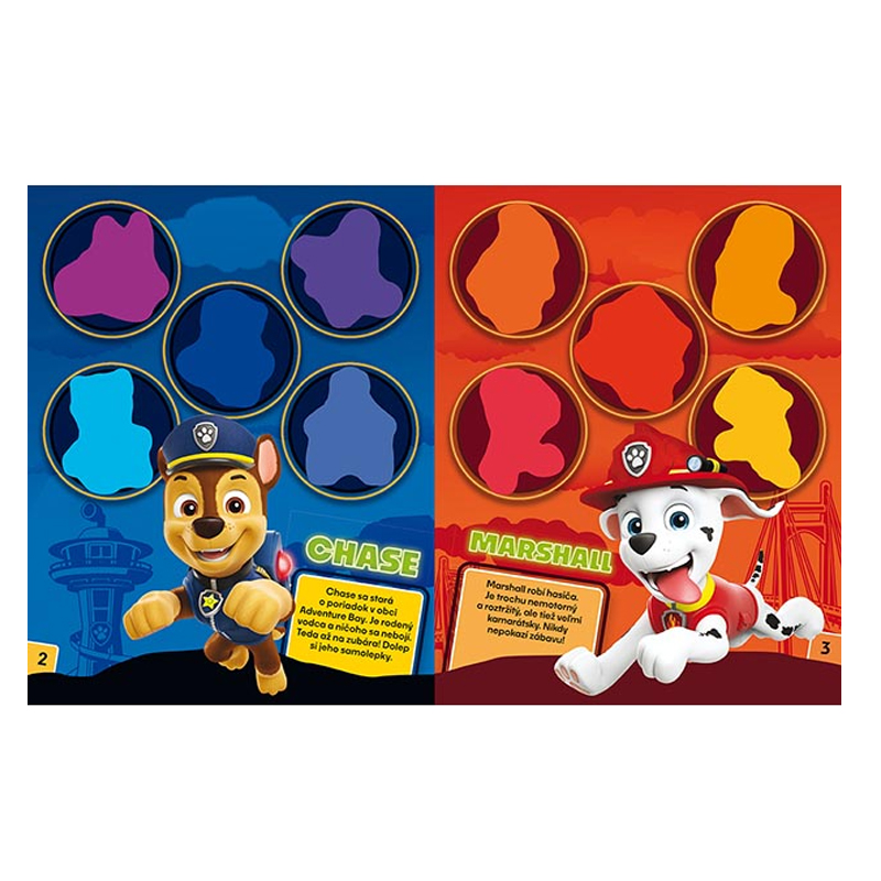Samolepková knižka obsahuje 12 strán a 4 strany samolepiek na dolepenie. Vybrané samolepky majú okraje, ktoré v tme svietia. Motív: Labková patrola. Rozmer: 276 X 216 X 3 mm