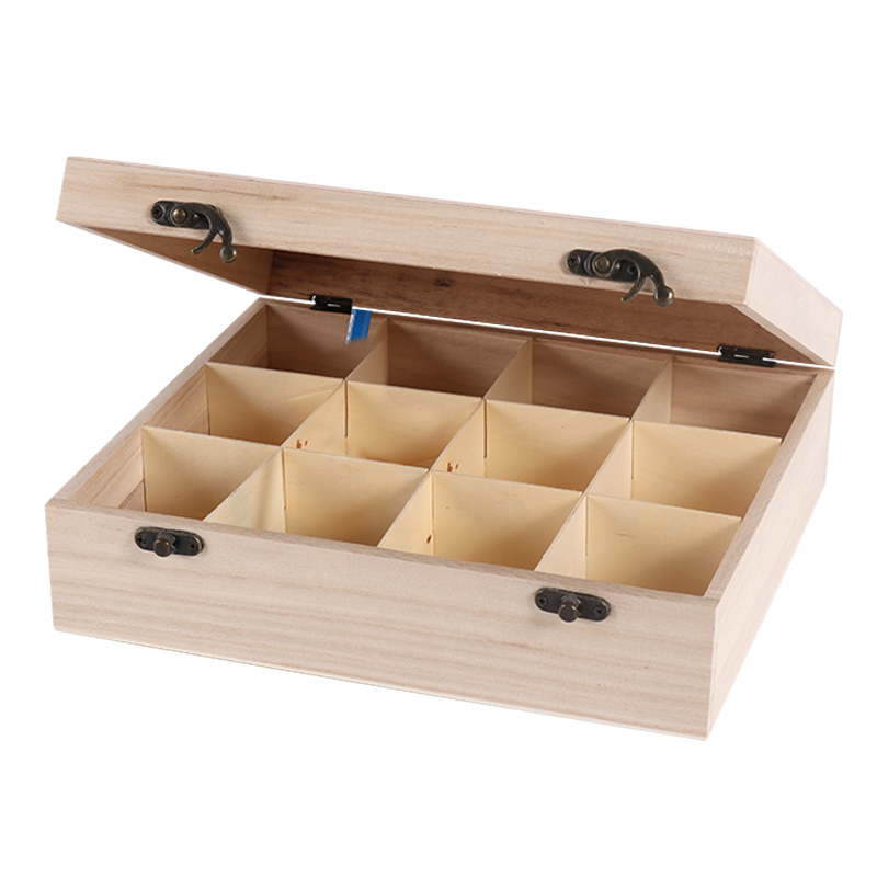 Drevená karbička na čaj /12 priehradková/ vhodná pre maľovanie akrylovými farbami, servítkovú techniku a rôzne kreatívne techniky. Rozmery: 21 x 26 x 8 cm.