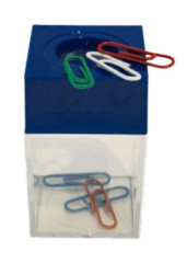 Držiak na kancelárske spinky s priehľadným telom a magnetickým vrchnákom. Spinky nie sú súčasťou balenia, výrobok sa predáva prázdny.