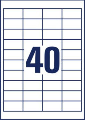 Presné dávkovanie a zaručene bezproblémová tlač vďaka inovatívnej technológii ultragrip®. -ideálne na všeobecné označovanie, napr. na organizáciu, evidenciu a značenie -farba: biela -rozmery: 48,5x25,4 mm -tvar: štvorcový -materiál: ekologický papier s certifikátom FSC®, z udržateľne obhospodarovaných lesov-vhodné pre všetky štandardné laserové a atramentové tlačiarne -bezproblémový chod v laserových tlačiarňach, potvrdený certifikátom TÜV SÜD -bezpečnostný okraj QCT zabraňuje vniknutiu zvyškov lepidla do tlačiarne -extra silná priľnavosť: etikety spoľahlivo držia na papieri, kartóne, skle aj plaste