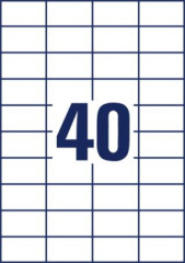 Presné dávkovanie a zaručene bezproblémová tlač vďaka inovatívnej technológii ultragrip®. -ideálne na všeobecné označovanie, napr. na organizáciu, evidenciu a značenie -farba: biela -rozmery: 52,5x29,7 mm -tvar: štvorcový -materiál: ekologický papier s certifikátom FSC®, z udržateľne obhospodarovaných lesov-vhodné pre všetky štandardné laserové a atramentové tlačiarne -bezproblémový chod v laserových tlačiarňach, potvrdený certifikátom TÜV SÜD -bezpečnostný okraj QCT zabraňuje vniknutiu zvyškov lepidla do tlačiarne -extra silná priľnavosť: etikety spoľahlivo držia na papieri, kartóne, skle aj plaste