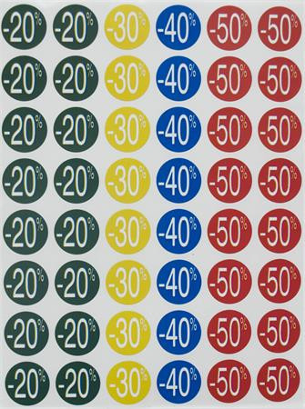Farebné predtlačené kruhové etikety na označovanie rôznych zliav. Prehľadné a výrazné riešenie pre akciové ponuky!