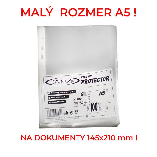 Plastový obal s eurozávesom na ukladanie materiálov. Matný povrch umožňuje dobrú viditeľnosť uložených materiálov. Hrúbka 0,040 mm, balenie 100 ks.