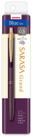 Gélové pero, 0,33 mm, stláčací mechanizmus, telo pera: baklažánovo fialová, ZEBRA ''Sarasa Grand'', modrá