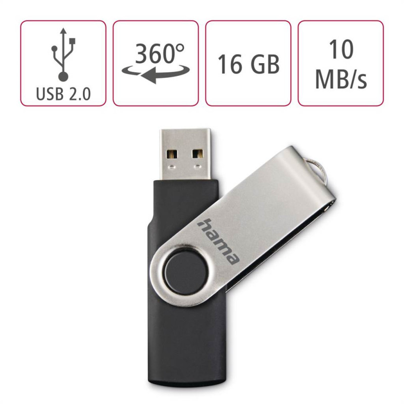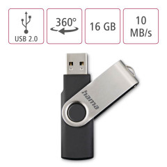 Hama USB 2.0 Flash Drive Rotate, 16 GB, 10 MB/s, čierna/strieborná