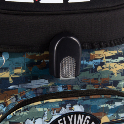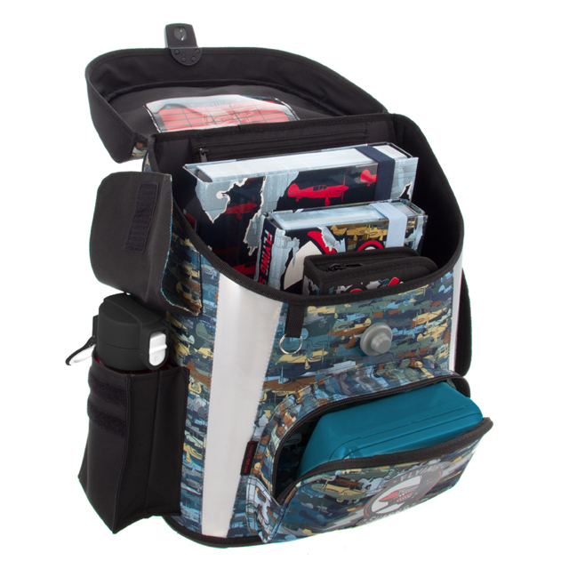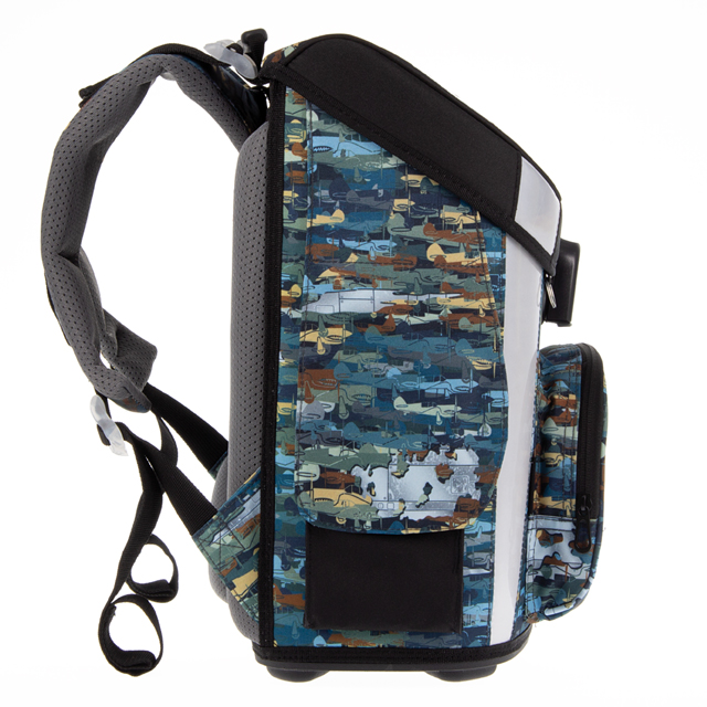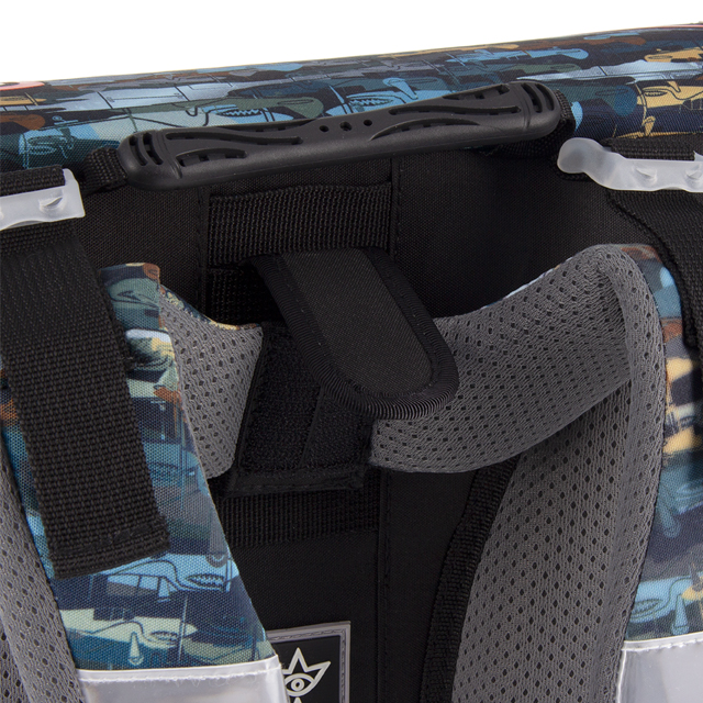 Bezpečnosť zaisťujú reflexné prvky a odrazky, ktoré sú umiestnené na viditeľných častiach aktovky. Na ľahké prenášanie slúži ergonomická silikónová rukoväť, navrhnutá priamo na detskú dlaň. Po oboch bokoch sú dve priestranné priehradky na suchý zips, ktoré sú na fľašu na pitie, či poslúžia ako vrecko na prezúvky. Ich výhodou je variabilita, kedy v normálnom stave je priehradka zložená k stene aktovky a v prípade potreby sa jednoducho roztiahne.