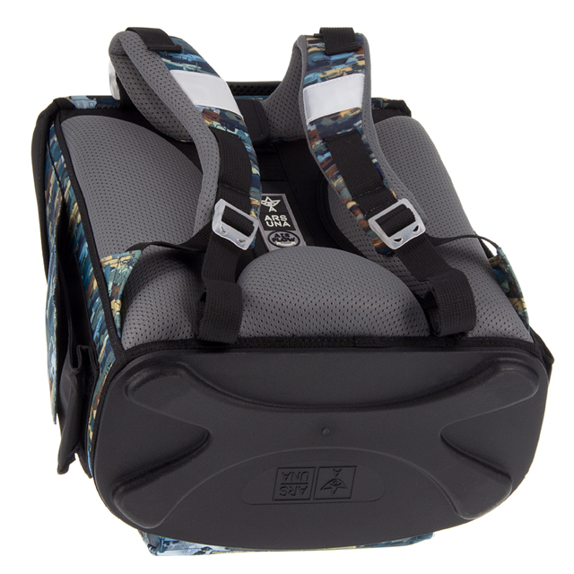 Exkluzívna kompaktná školská taška ARS UNA je školská taška s ergonomicky tvarovanou chrbtovou časťou. V hornej časti je špeciálne polstrovanie na lopatky a v spodnej časti na bedrovom stavci, ktoré predchádza možným otlakom či modrinám. Pevné dno aktovky je 100% vodeodolné a zabraňuje tak možnému presiaknutiu vody. Tašku môžete položiť aj na mokrý povrch a zostane stále suchá. Zároveň je celá aktovka vyrobená z nepremokavého materiálu a nie je na ňu nutné dokupovať navyše pršiplášť. Uzatváranie zabezpečuje pevný magnetický zámok.