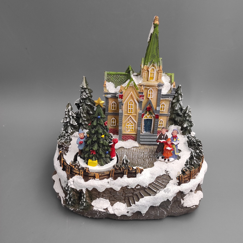Kostol diorám s vianočnou scénou. Napájanie: 3xAA batéria, nie je príslušenstvom. Rozmer: 20x16x20,5cm. Materiál: polyresin.
