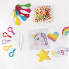 Kreatívna sada s motívom jednorožca, s ktorou si deti môžu vyrobiť až 5 rôznych kľúčeniek. Balenie obsahuje všetky potrebné komponenty na tvorenie, ako aj jednoduchý návod na použitie. Táto zábavná aktivita prináša viacero benefitov: pomáha znižovať stres, zvyšuje sebavedomie, rozvíja pamäť a koordináciu, pričom deti si vytvoria vlastné originálne výrobky.