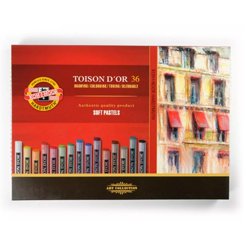Prašné kriedy pre výtvarníkov vysokej kvality, súprava 36 farieb. Okrúhly tvar spriemerom 10 mm, dĺžka 75 mm. Aplikujú sa takmer výhradne na papier, umožňujúsuché rozmazávanie a vytváranie jemných a