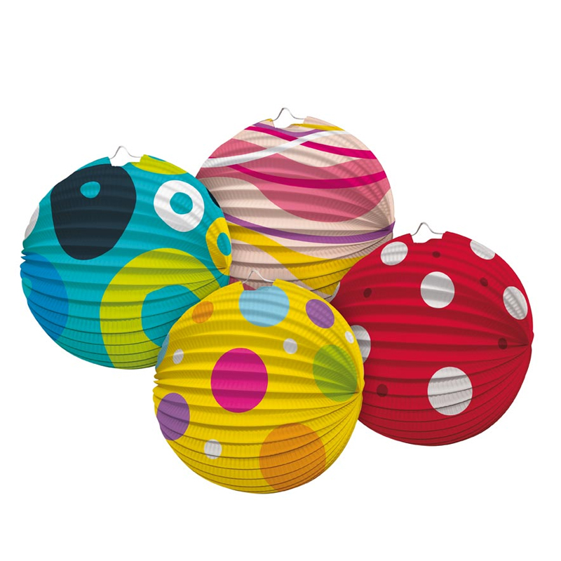 Papierový okrúhly farebný lampión. Vhodná dekorácia na párty, lampiónový sprievod, záhradnú slávnosť, karneval, narodeninovú oslavu alebo len tak na zavesenie v detskej izbe. Vyberte si svoj lampión a urobte z obyčajného večera čarovný.Lampión je