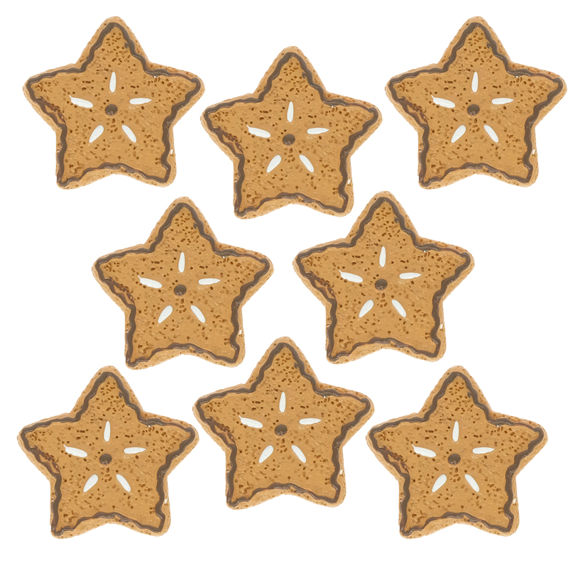 Medovníkové hviezdy nalepovacie 8ks/bal. na výrobu pozdravov, albumov a rôznych dekorácií. Rozmer hviezd: 3,5x0,4x3,2 cm. Materiál: polyresin. Cena za balenie.