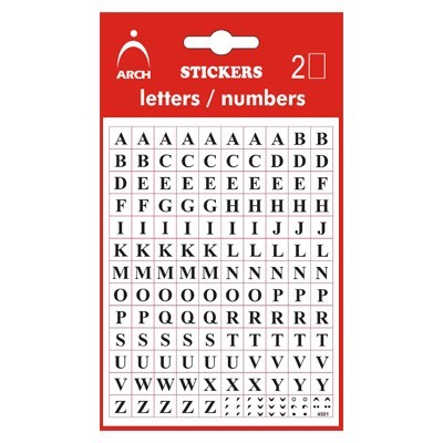 Samolepiace čísla a písmená, slovenské a české znaky. Čierna potlač na priehľadnej samolepiacej fólii, balenie 2 hárky v blisri.