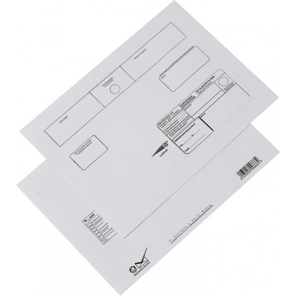 Biela obálka s doručenkou Doporučene Do vlastných rúk - Opakované doručenie Nedoposielať, samolepiace s odtrhávacou silikónovou páskou.Vyrobené z bieleho ofsetu s gramážou 100 g/m2. Formát 229 x 324