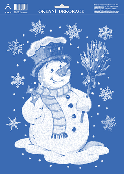 Okenná fólia s Vianočným motívom a glittrovou úpravou. Motív: snehuliak. Rozmer: 25x35cm.