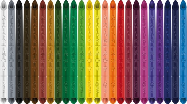 Súprava 24 ks bezdrevých pasteliek Maped Color'Peps Infinity s originálnym patentovaným dizajnom, ktorý umožňuje kresliť oboma stranami. Pastelky tvoria 100% tuha a nie je nutné ju orezávať a majú teda nulový odpad. Ostria sa sami pri vyfarbovaní. Pa