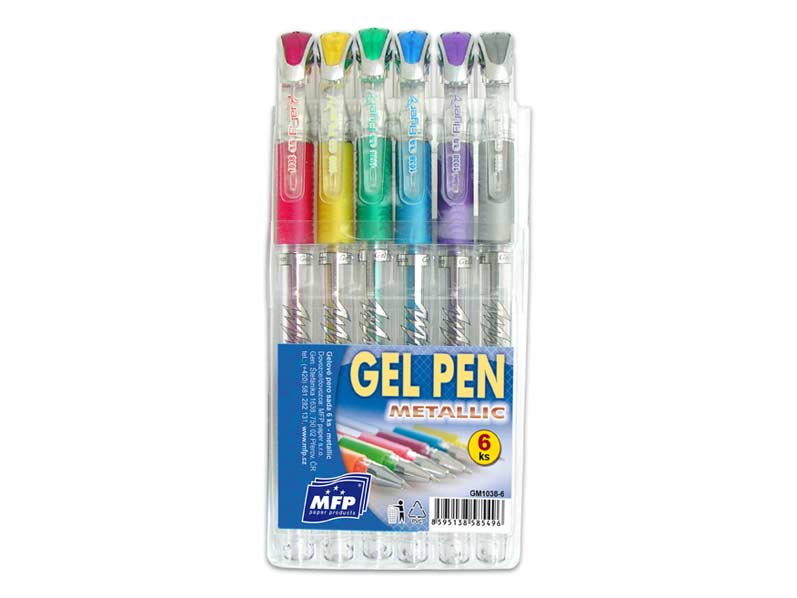 Súprava gélových metalických pier s hrotom 0,6mm, 6 farieb.