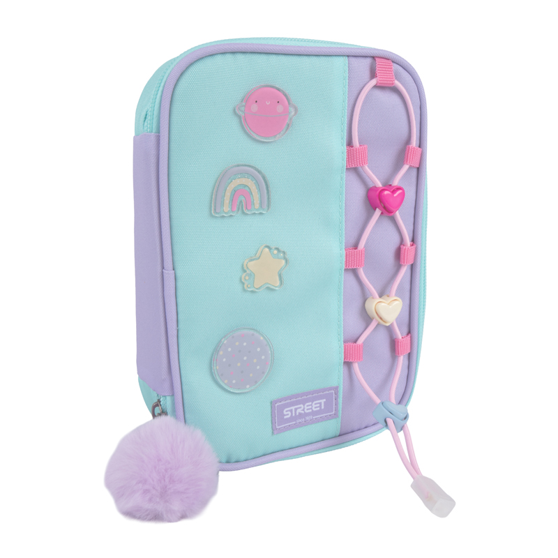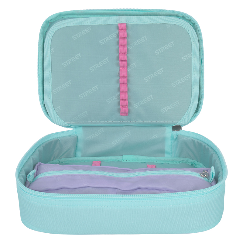 Školské púzdro v modernom prevedení. Vybavené pevnými zipsami, sieťovanou kapsičkou na zips a chlopňou s pevnými pútkami po oboch stranách. Pod chlopňou je miesto pre volné uloženie písacích potrieb či iných drobností. Vhodné pre školákov na 2. stupni a starších študentov. Puzdro je ľahko umývateľné.Rozmer: 22x11x5,5cm.