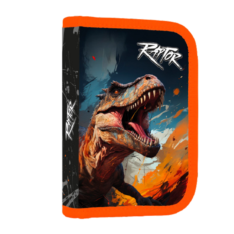Detský školský jednoposchodový peračník s dvomi klopami, s 25 gumovými úchytmi na ceruzky a perá, gumu a prepážkou s priehľadnou fóliou a rozvrhom hodín.