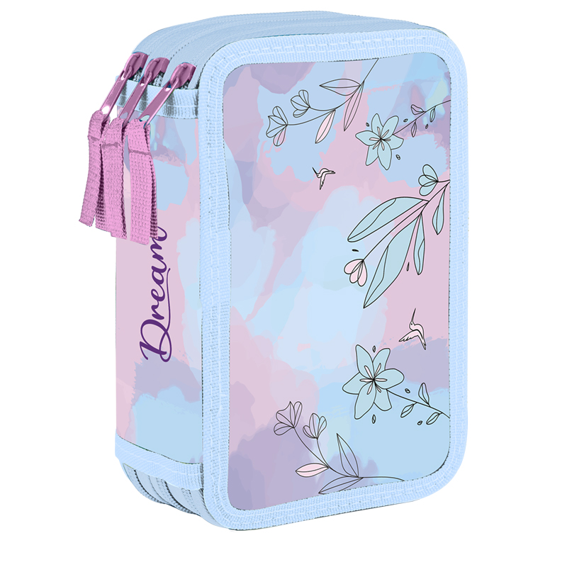 Detský školský trojposchodový peračník s gumovými úchytmi na ceruzky a perá, gumu a prepážkou s priehľadnou fóliou a rozvrhom hodín.. Peračník je prázdny.Rozmery: 21x13x7 cm