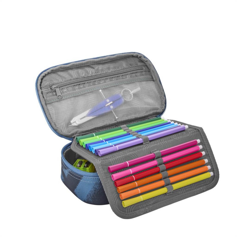 - peračník pre uloženie písacích potrieb, pravítok a ďalších školských alebo osobných predmetov - vrátane malého pravítka a trojuholníku s uhlomerom - vrecko na zips vo veku peračníka pre malé predmety - priehľadná priehradka napr. pre rozvrh hodín - 21 pútok na perá a ceruzky pre prehľadné usporiadanie - pútka pre malé pravítko a všité vrecko pre trojuholník - zatváranie vnútorného veka na suchý zips - zatváranie peračníku na zips Udržateľnosť: - 100% PET RECYCLED - ekologický výrobok, látka je vyrobená z recyklovaných PET fliaš - 100% PFC FREE - používame impregnáciu bez škodlivých PFC chemikálií, naša impregnácia je šetrne vyrobená na vodnej báze - 100% VEGAN PRODUCT- nepoužívame materiály živočíšneho pôvodu - vyrobené s ohľadom na životné prostredie (bluesign® - System Partner) - vyrobené v prevádzke s dobrými sociálnymi a bezpečnostnými podmienkami pre zamestnancov, člen organizácie amfori Technické parametre: - materiál: polyester - rozmery: š. 23 cm x v. 7 cm x h. 12 cm - hmotnosť: 170 g - objem: 1,5 l