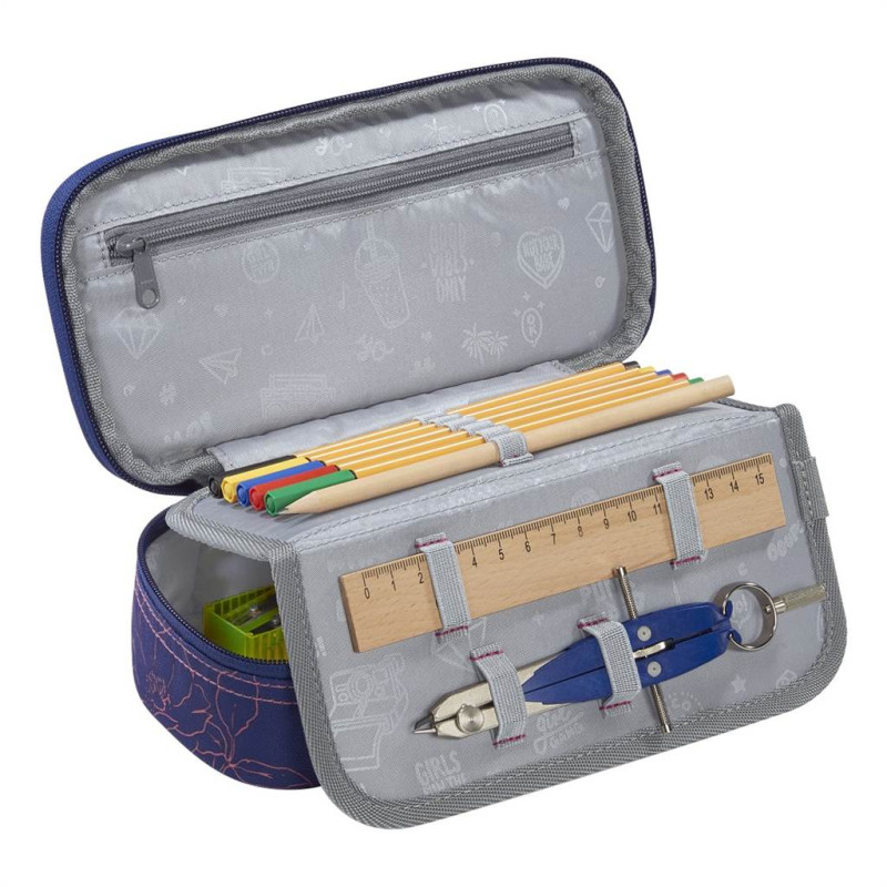 - ďalších 7 väčších pútok pre príslušenstvo (napr. pravítko, kružidlo, gumu, malý trojuholník)