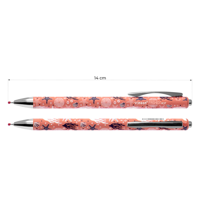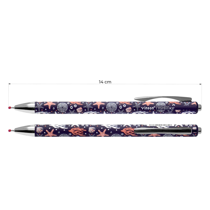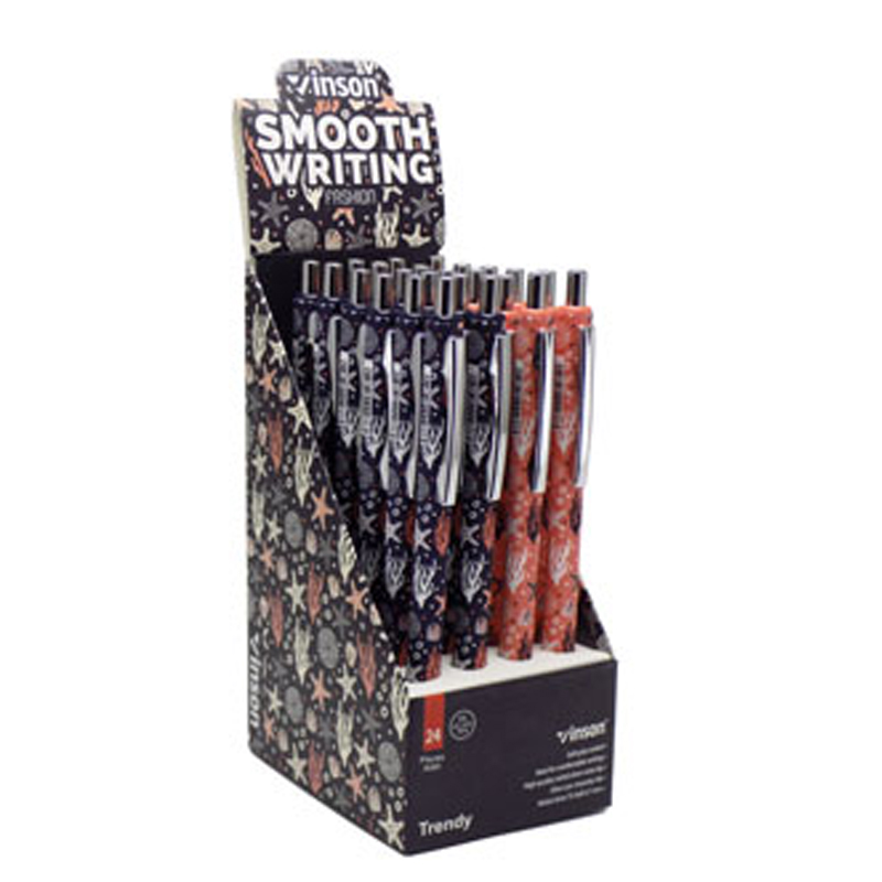 Pero guličkové VINSON K37 Trendy. Pero s gélovým atramentom, farba atramentu modrá. Hrúbka písma 0,7mm. Pero má klikací mechanizmus, kovový hrot a klip. Balenie: 24 ks. Cena za 1 ks.