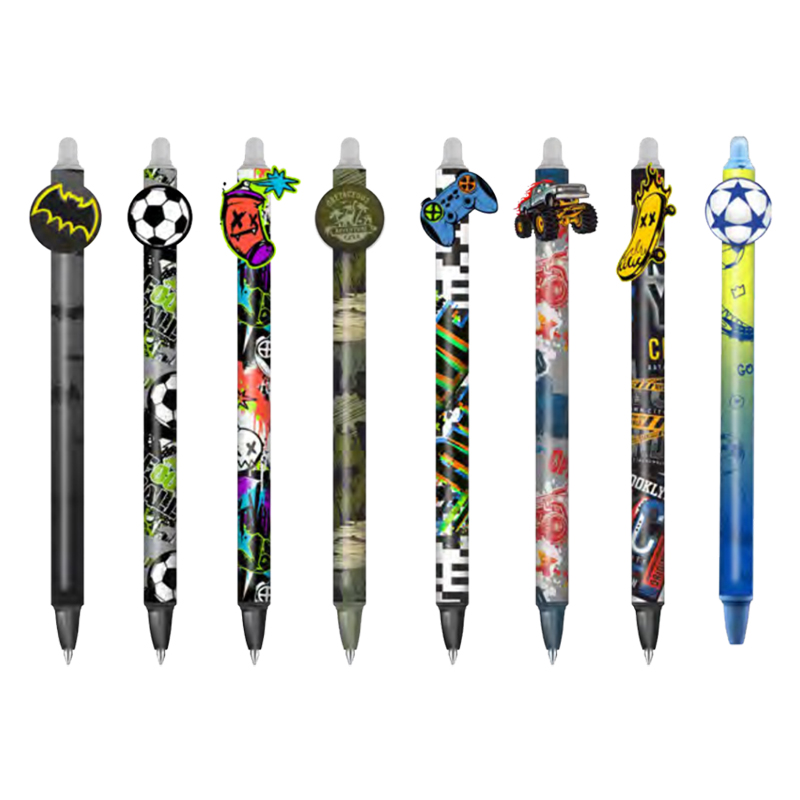 Gumovacie gélové guľôčkové pero obsahuje špeciálny atrament, tzv. vymaž a prepíš, alebo vymaž a nechaj to znovu objaviť. Ak urobíte chybu, stačí len otočiť pero a plastovou špičkou text vymažete. Špička zahreje atrament, ten zmizne a môžeš ho znova p