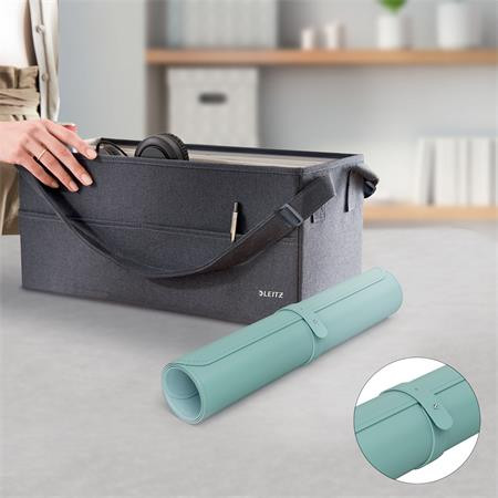 Zostaňte produktívni a cíťte sa dobre, nech pracujete kdekoľvek, s priehľadnou podložkou na stôl LEITZ! -vodeodolná, ľahko sa čistí -rozmery: 80 x 40cm -ponúka dostatočné miesto pre klávesnicu, myš, poznámkový blok a doplnky, kompatibilná so všetkými laserovými a optickými myšami -chráni písací stôl pred poškriabaním a rozliatymi tekutinami -pomocou pásika ju možno zrolovať pre jednoduché prenášanie -bez plastového obalu -matná farba, minimalistiscký dizajn a zaoblené rohy -dá sa použiť aj ako podložka pod myš