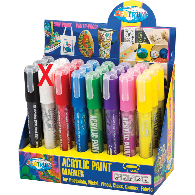 Akrylové popisovače v 8 rôznych farbách. Hrot sa dá vymieňať a je v dvoch variantoch - jedna strana zrezaná šírka stopy 3-5 mm, druhá strana klasická hrubšia fixa. Možnosť použitia na maľovanie na sklo, porcelán, kameň, keramiku...Pri objednávke j