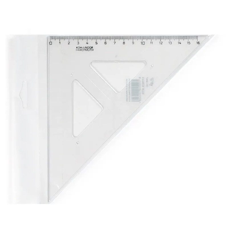 Trojuholník 45/177 s kolmicou transparentný