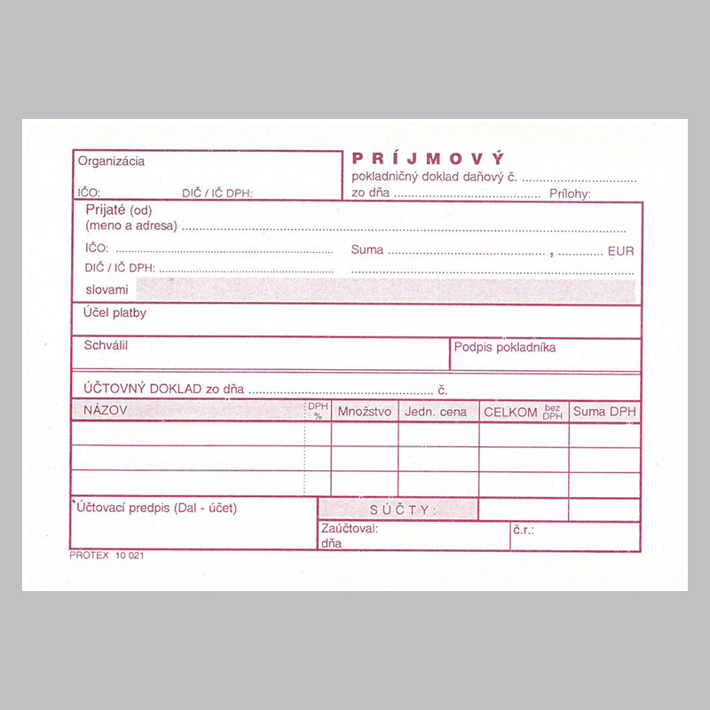 Príjmový pokladničný doklad obyčajný,daňový A6 100listov, 10021