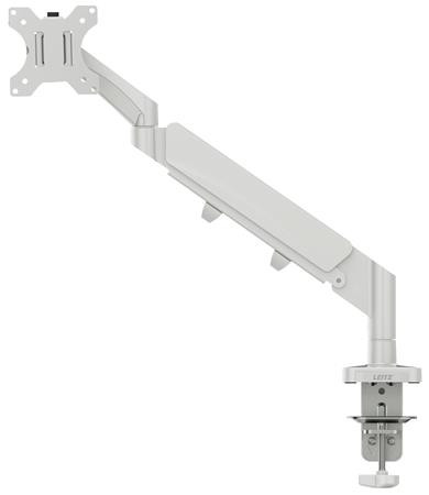 Jednoduché rameno s pružinou na ľahké nastavenie výšky monitora (185–435 mm). Ľahké nastavenie výšky, hĺbky a uhla iba jednou rukou: otáčanie doľava a doprava o +90°/-90°, horizontálne a vertikálne otočenie monitora až do 180°, náklon obrazovky +55°/-55°. Pevná a stabilná konštrukcia na podporu plochého alebo zakriveného monitora s uhlopriečkou 17"–32" a hmotnosťou do 9 kg. Jednoduchá inštalácia pomocou priloženej rýchloupínacej odnímateľnej dosky Vesa® (75 a 100 mm) a silikónovej pogumovanej c-skrutky, ktorá znižuje vibrácie a chráni povrch stola, alebo pomocou priechodky v stole (rozsah hrúbky stola: 10–80 mm). Náradie na montáž a nastavenie je súčasťou balenia. Systém vedenia káblov zabezpečuje poriadok v kábloch monitora a tým aj lepšie usporiadanie pracovného priestoru. Certifikát IGR a TÜV. Rozmery: 550 x 110 x 520 mm. Hmotnosť: 2,07 kg